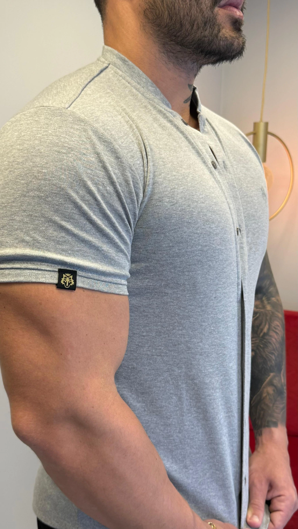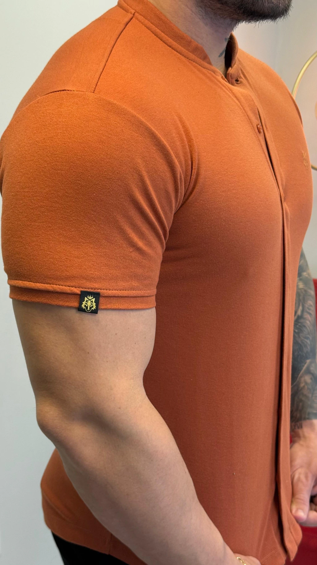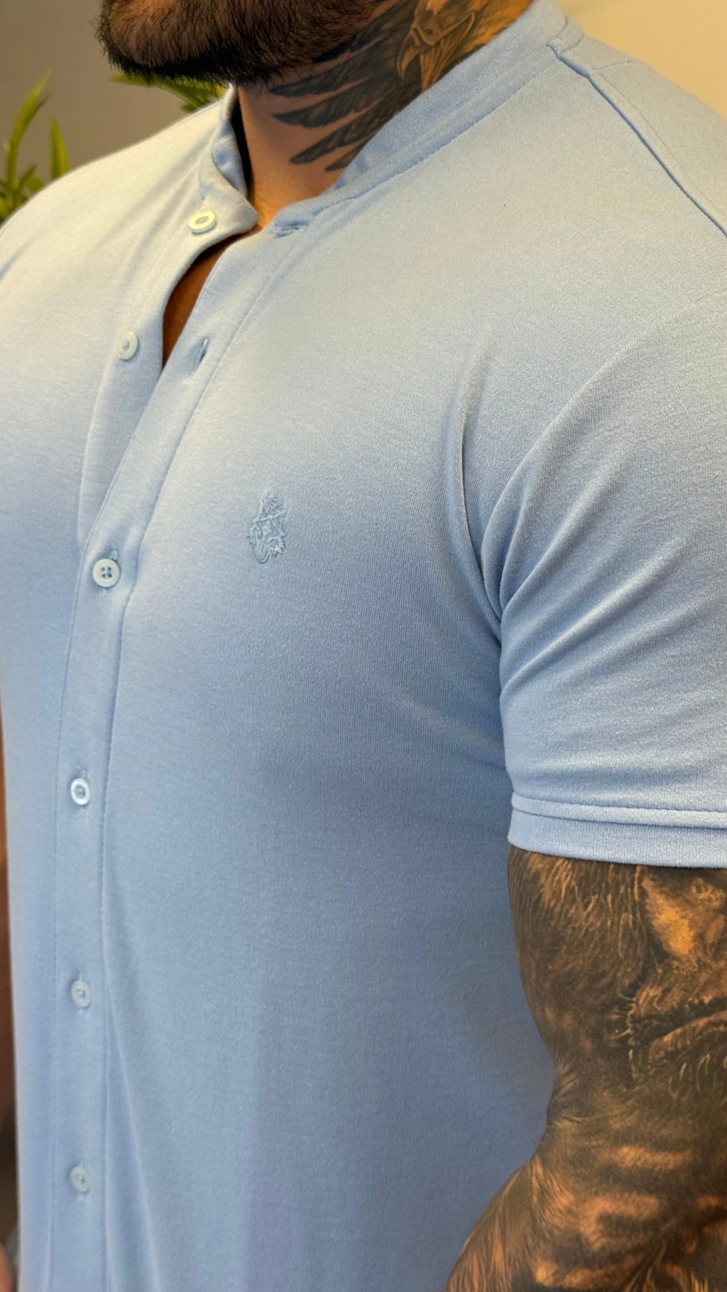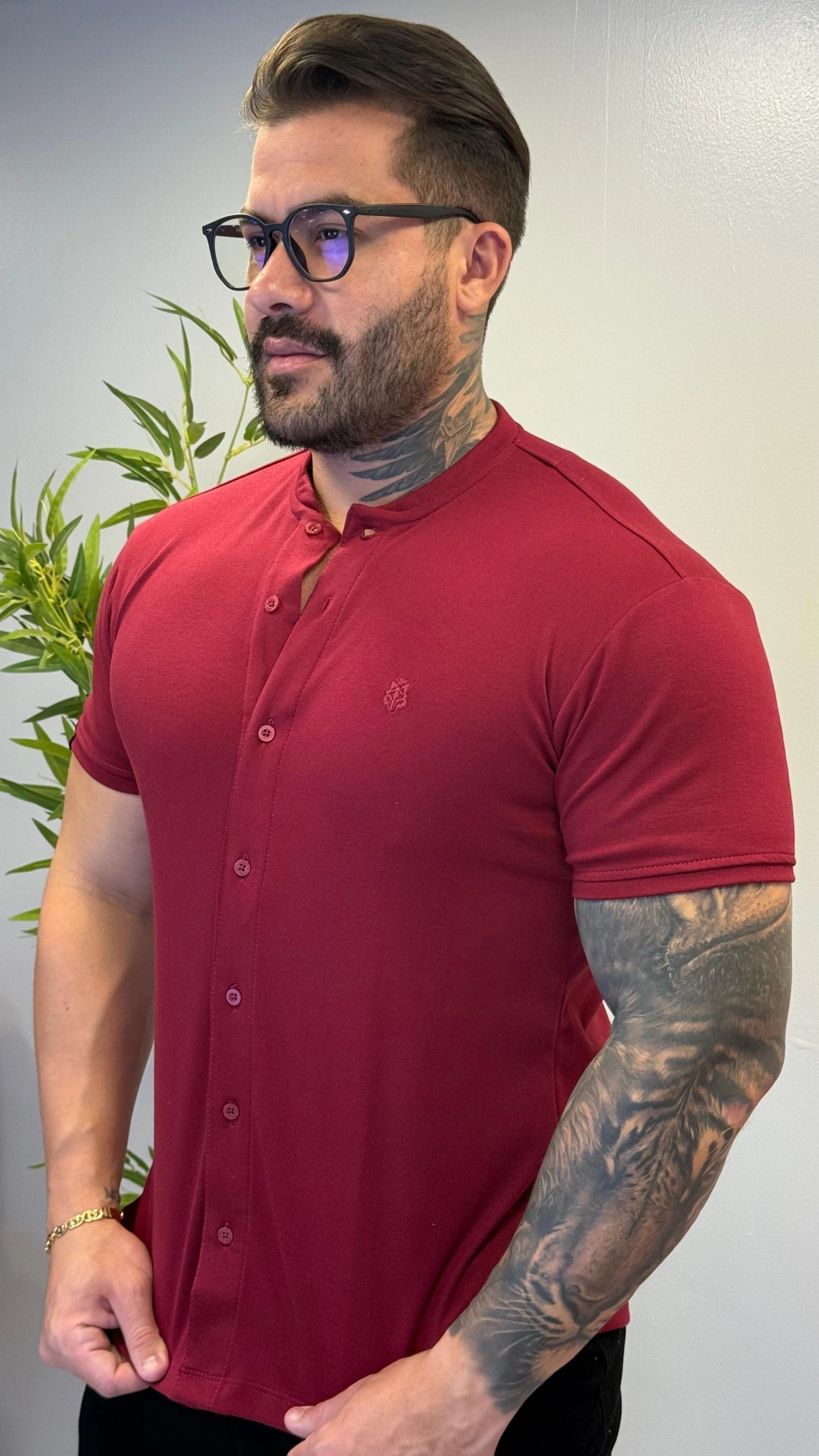 Modelagem ajustada que proporciona um caimento sofisticado e imponente, destacando o estilo moderno da gola padre com abertura em botões. Ideal para compor looks casuais elegantes, mantendo conforto e liberdade de movimento.
