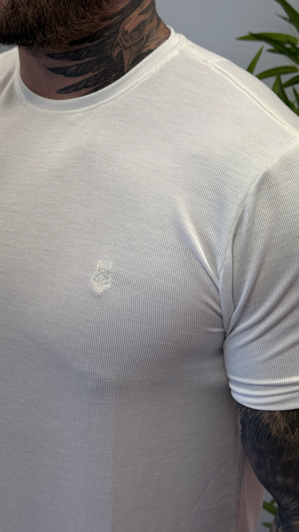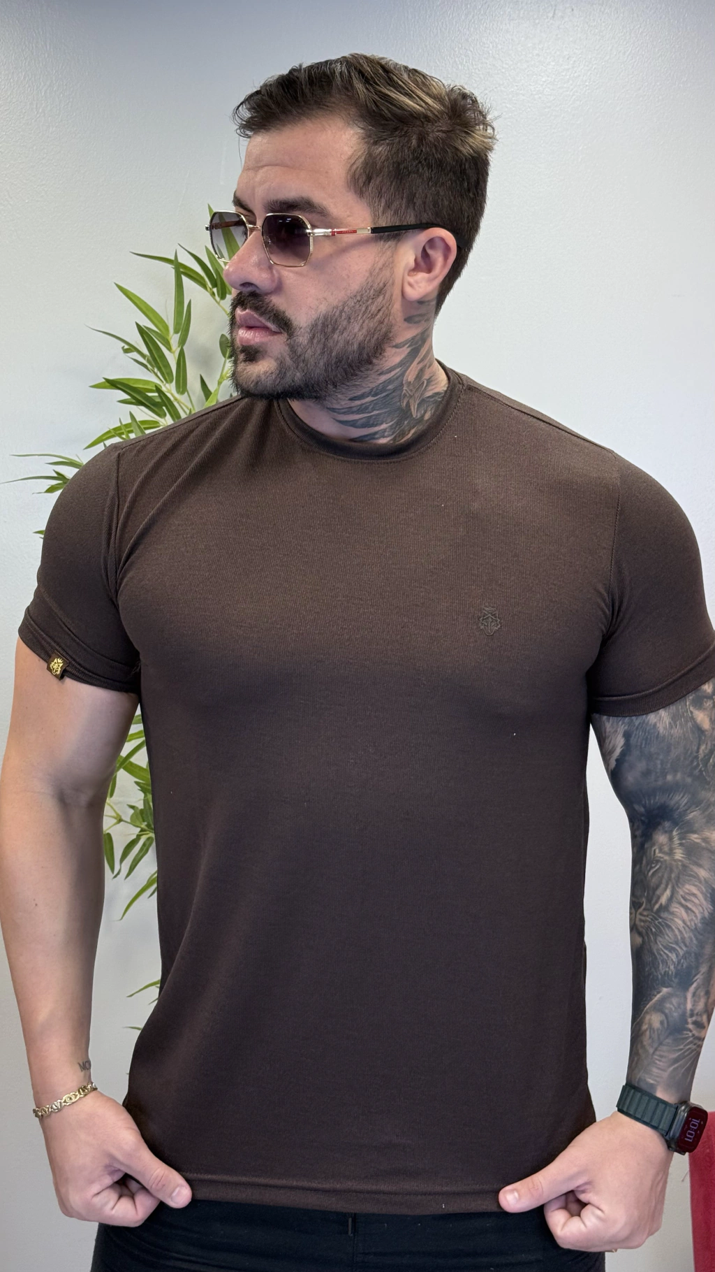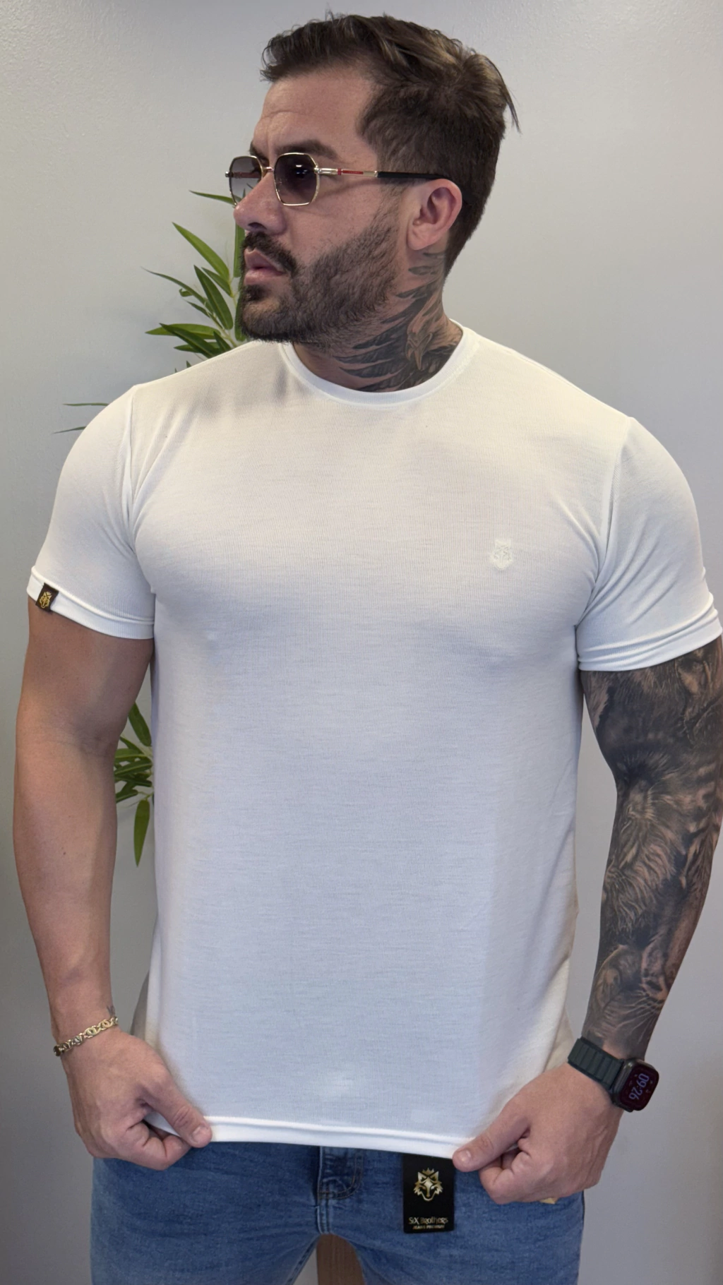 Modelagem ajustada que proporciona um caimento sofisticado e imponente, destacando o estilo clássico da camiseta com tecido texturizado. Ideal para compor looks casuais, mantendo conforto e liberdade de movimento.