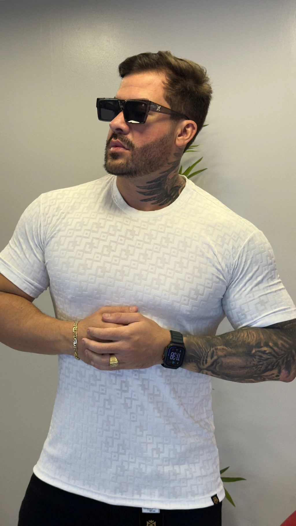 Feita com algodão, poliéster e elastano, essa camiseta oferece um toque macio e ajuste perfeito, ideal para quem busca praticidade e estilo em qualquer ocasião.